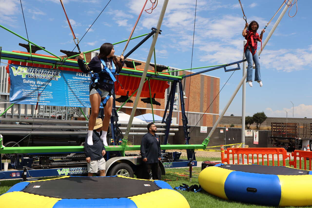 V4 Euro Bungee Trampoline Rental Los Angeles is the newest hottest rental in SoCal. Our V4 Bungee Trampoline rental a great ride rental attraction for all ages. It gives the rider of experince of jumping at hights never imagines upto 20 feet up into the air in a safe and controlled manner. Our ride is inspected and certified to operate in California by OSHA annually. Cindys Jumpers has the best Euro Bungee Trampoline Rental in Los Angeles County and Orange County.