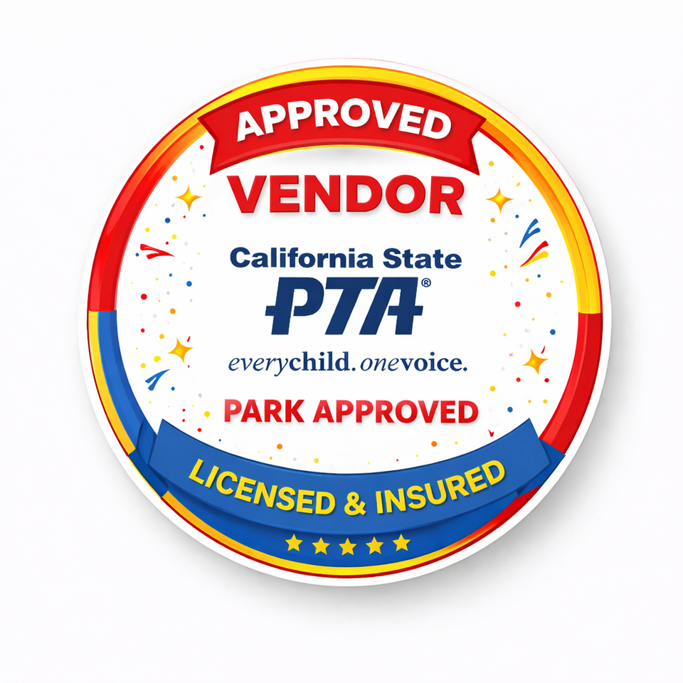 Licensed, Insured, Park Approved, California State School PTA Approved Vendor,