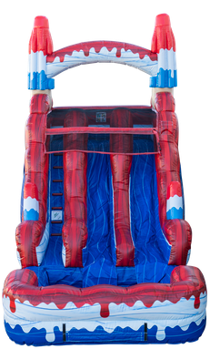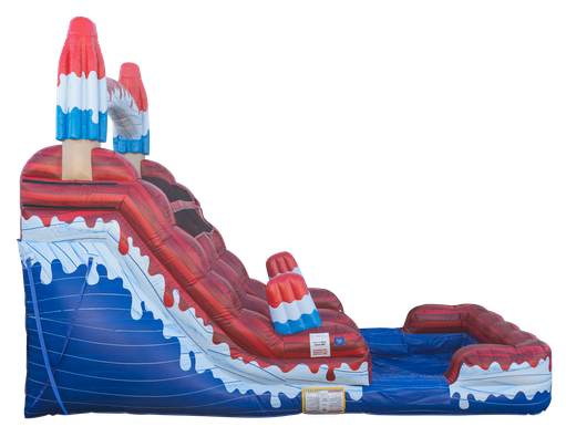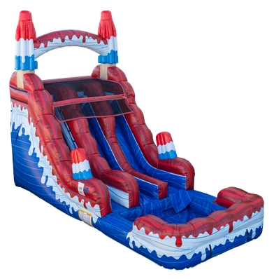 Our 15' dual lane Popsicle Water Slide is great for all ages. This water slide has two slides is recommened for kids 5 years old and older to adults. Requires a water source nearby to fill up the pool.