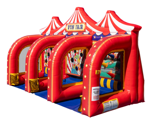 Check out our all NEW Fun Fair 3in1 Carnival Games! This Fun Fair 3in1 Game Rental inlcudes 3 fun games (darts, clown down game and ring toss). This Fun Fair 3in1 Carnival Game Rental adds fun to your next Special Event. Rent this from the Best Bounce House Rental comapnay in all SoCal, Cindys Jumpers only!