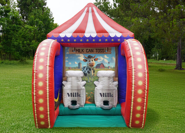 DescriptionRent this inflatable Milk Can Toss carnival game for your next special event. Great for kids 3+ and up. Includes 6 softballs. Toss the balls inside the milk can to win. This is fun for all ages kids and adults. Add this very popular game to your event.